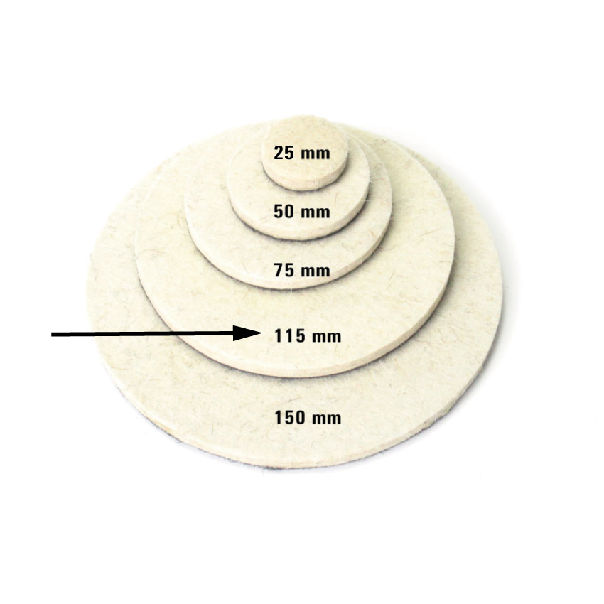 Disco fieltro diámetro 4,5”, 125 mm. espesor 6 mm, con fijación velcro. Para pulido de terminación de vidrio, mármol, granito, acero inoxidable y materiales duros. Montar en plato disco soporte con velcro de 4,5 pulgadas.